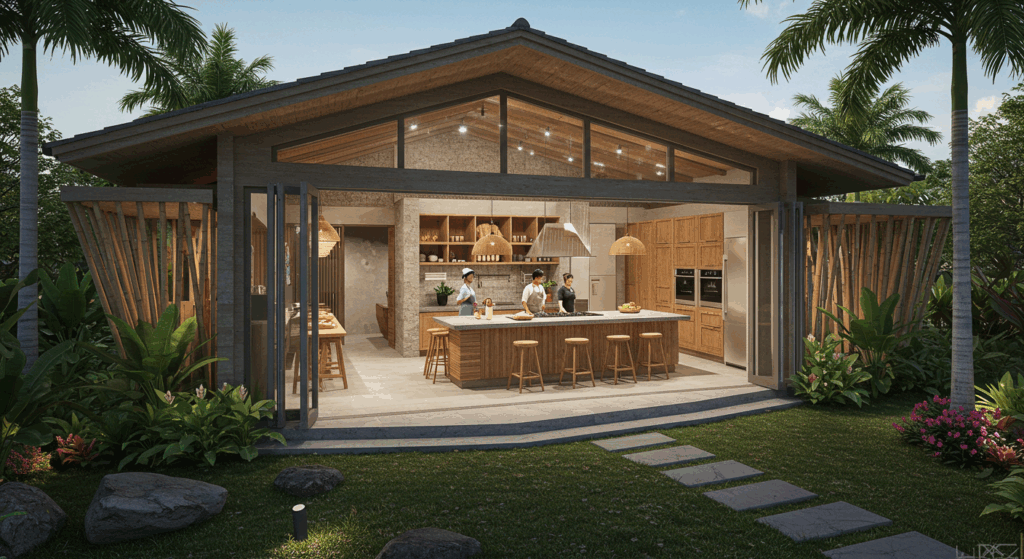 Our Architect and Architectural Services for Cooking Classes and Demo Kitchens in Bali design modern, fully equipped, and interactive culinary spaces that inspire creativity and provide an exceptional hands-on cooking experience.