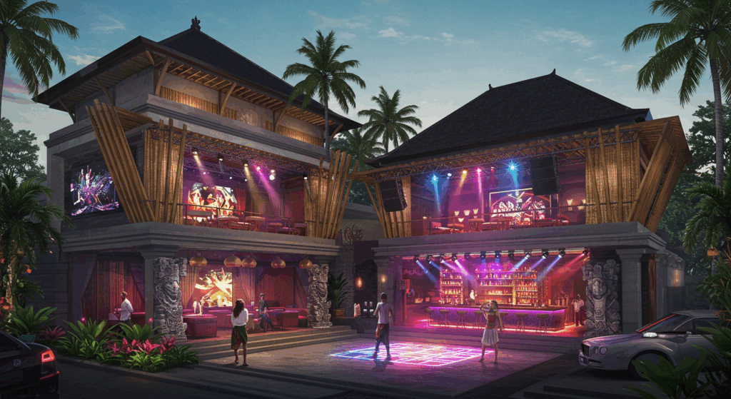 Our Architect and Architectural Services for Dance Clubs in Bali design sleek, energetic, and visually striking spaces with dynamic lighting, spacious dance floors, and top-notch acoustics, enhancing Bali’s nightlife scene.