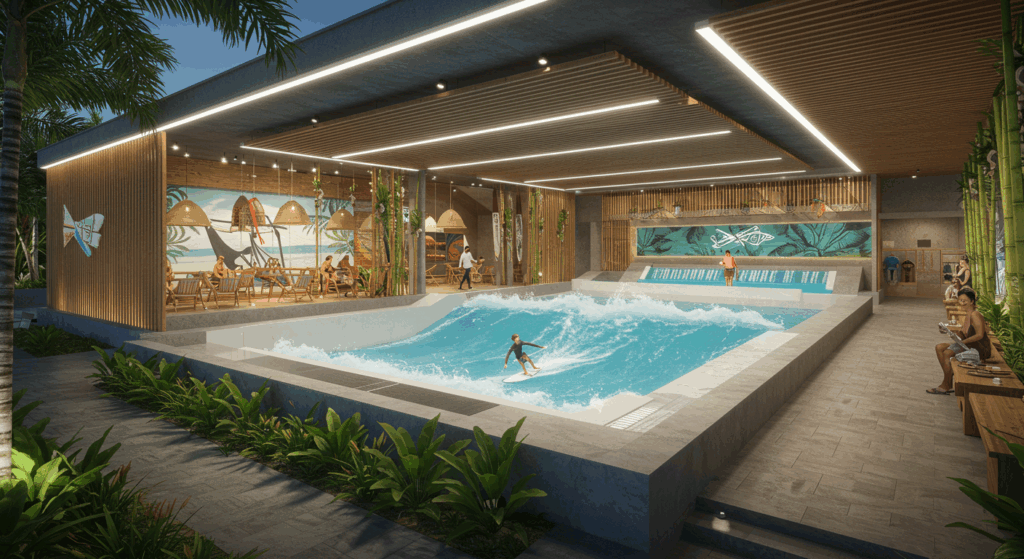 Our Architect and Architectural Services for Indoor Surfing Centers in Bali create dynamic, wave-powered, and visually captivating spaces that bring the thrill of surfing indoors, offering year-round entertainment.