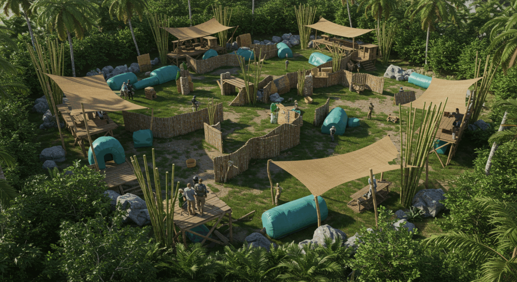 Our Architect and Architectural Services for Paintball Fields in Bali create action-packed, strategically designed arenas with varied terrain and cover features, delivering thrilling outdoor and indoor paintball experiences.