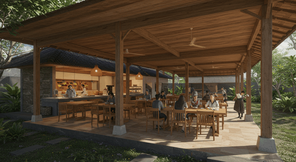 Our Architect and Architectural Services for Cafeterias and Dining Halls in Bali focus on creating welcoming, efficient, and hygienic spaces that enhance the dining experience. We integrate thoughtful layouts with Bali’s aesthetic charm to design environments that foster community and comfort.