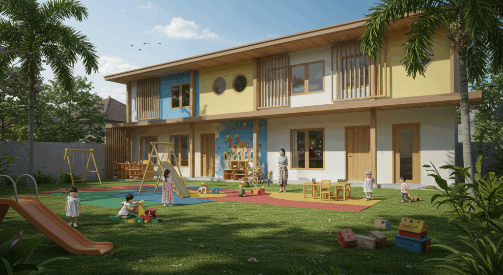 Our Architect and Architectural Services for Kindergartens and Daycare Centers in Bali focus on creating safe, playful, and nurturing environments that support early childhood development. We blend functional design with Bali’s warm and welcoming atmosphere to inspire learning and imagination.