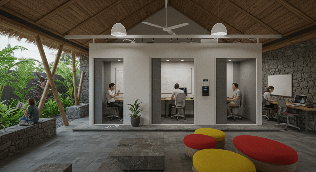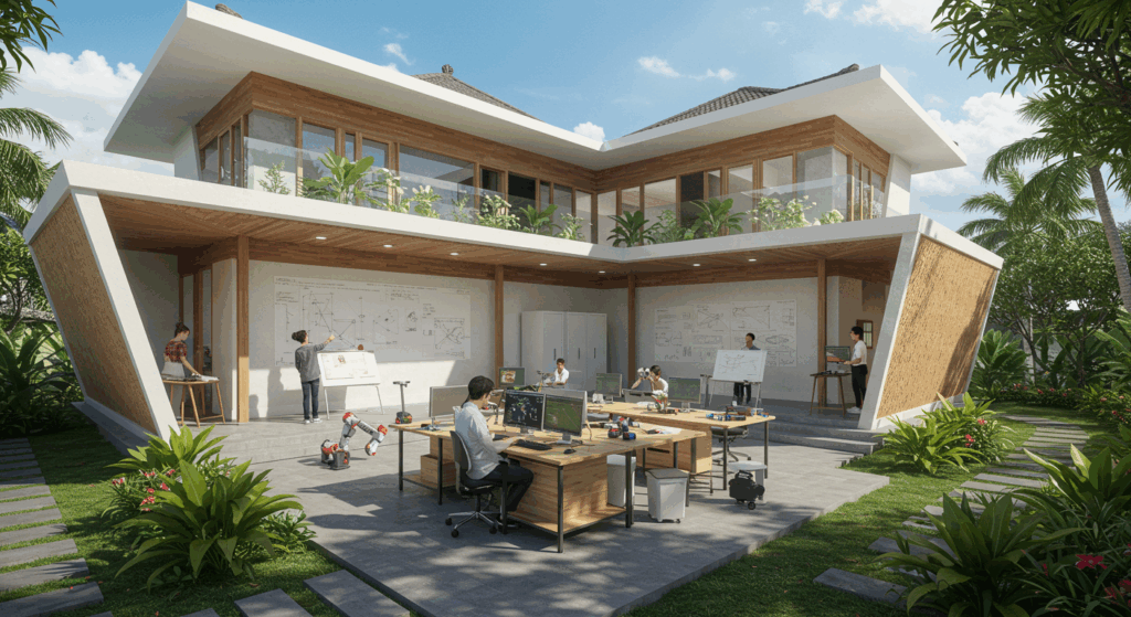 Our Architect and Architectural Services for Innovation and Maker Spaces in Bali focus on designing flexible, collaborative environments that spark creativity and hands-on learning. We merge cutting-edge functionality with Bali’s vibrant character to foster innovation and community-driven development.