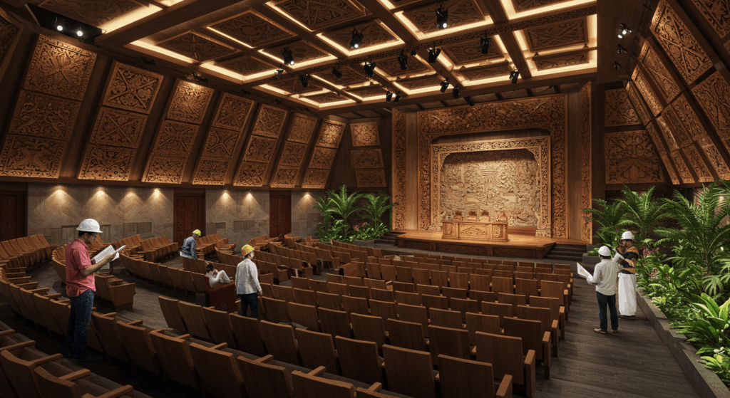 Our architect and architectural services for auditorium spaces in Bali feature acoustically refined venues suited for lectures, performances, and large presentations, with a focus on comfort and state-of-the-art technology.