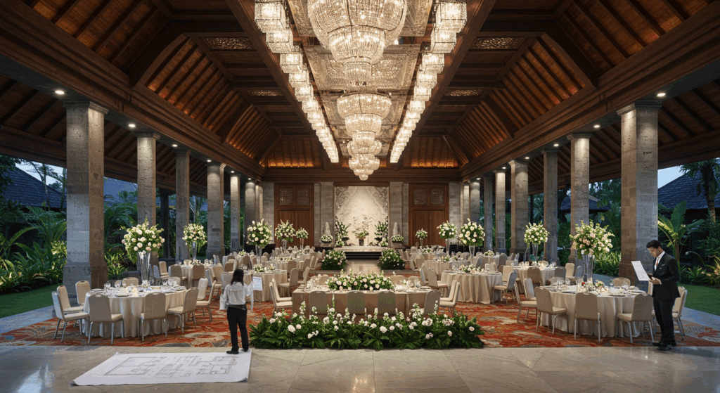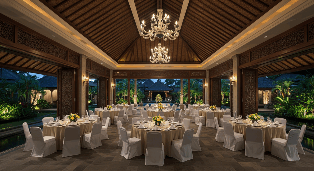 Our architect and architectural services for hotel ballrooms in Bali offer elegant, multi-purpose spaces within luxury hotels, perfect for hosting weddings, corporate events, and high-profile gatherings.