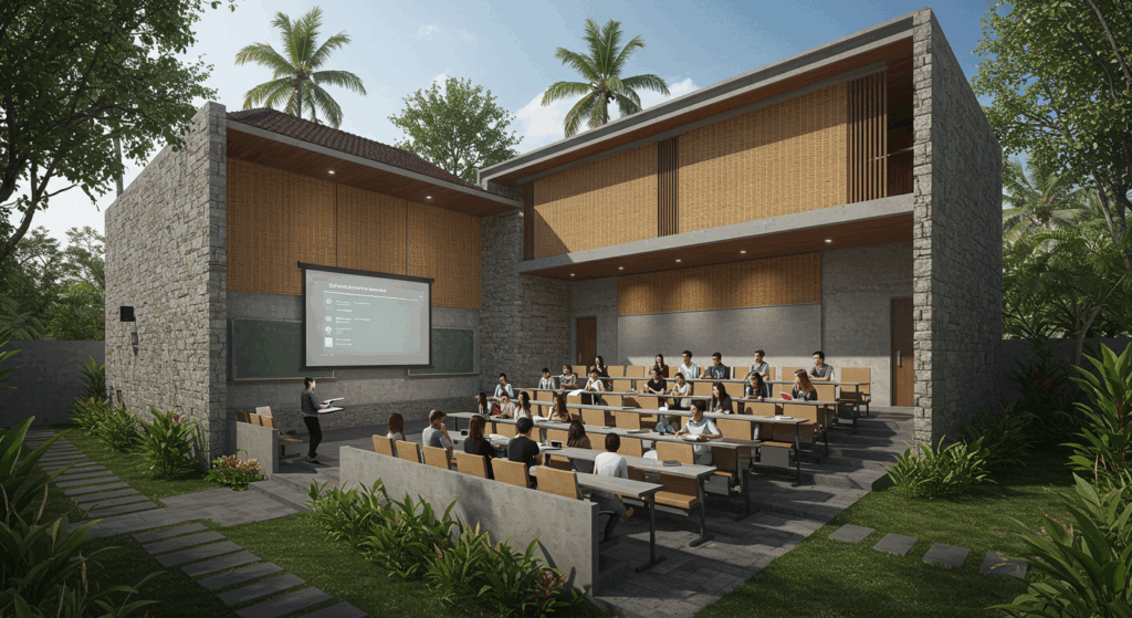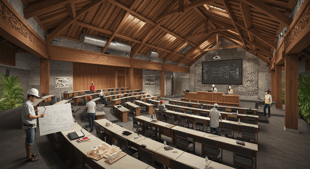 Our architect and architectural services for lecture halls in Bali provide functional, modern spaces optimized for educational seminars, talks, and academic events, with an emphasis on clarity and comfort for audiences.