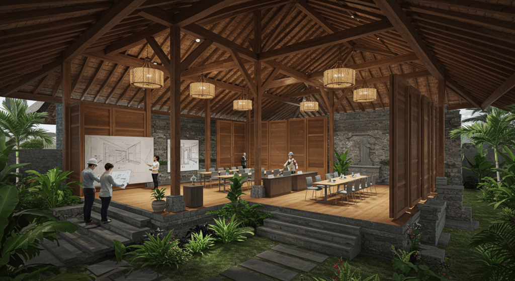 Our architect and architectural services for workshop spaces in Bali create functional, adaptable environments for hands-on learning, training, and creative production.