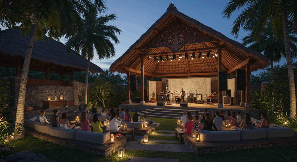 Our architect and architectural services for music venues in Bali feature acoustically engineered spaces perfect for live performances, from intimate clubs to large concert halls.