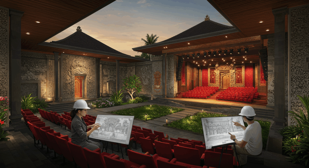 Our architect and architectural services for performing arts theaters in Bali feature elegant, acoustically advanced spaces that enhance the audience experience for theater, music, and dance performances.