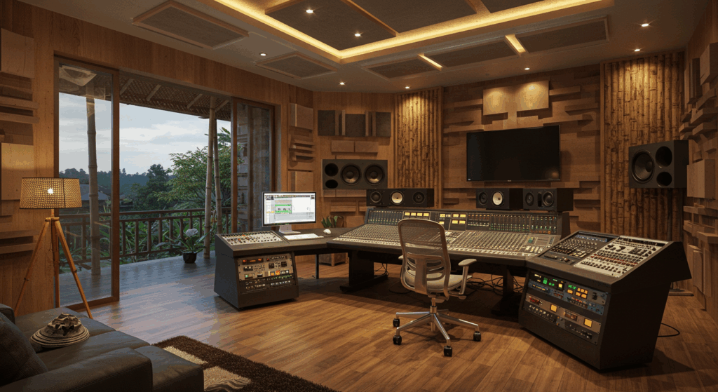 Our Architect and Architectural Services for Audio Mastering Rooms in Bali design acoustically optimized spaces that enhance sound clarity and precision, seamlessly blending cutting-edge technology with a serene and creative environment for audio professionals.