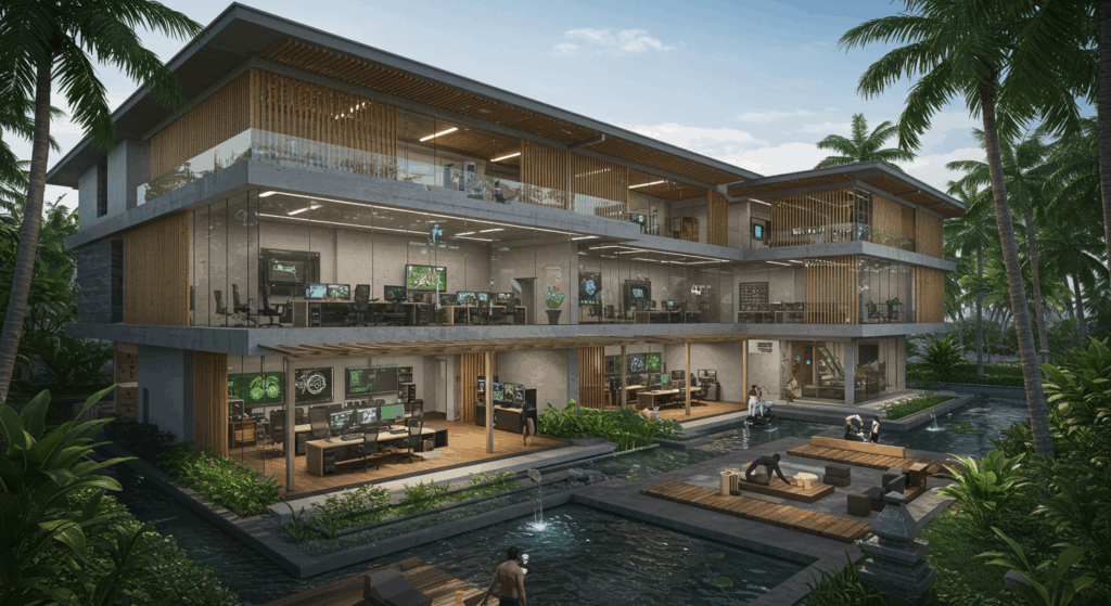 Our Architect and Architectural Services for CGI Studios in Bali design state-of-the-art, innovation-driven workspaces that optimize digital creativity and production, seamlessly integrating advanced technology with the island’s thriving film and media industry.
