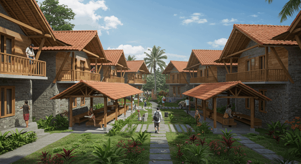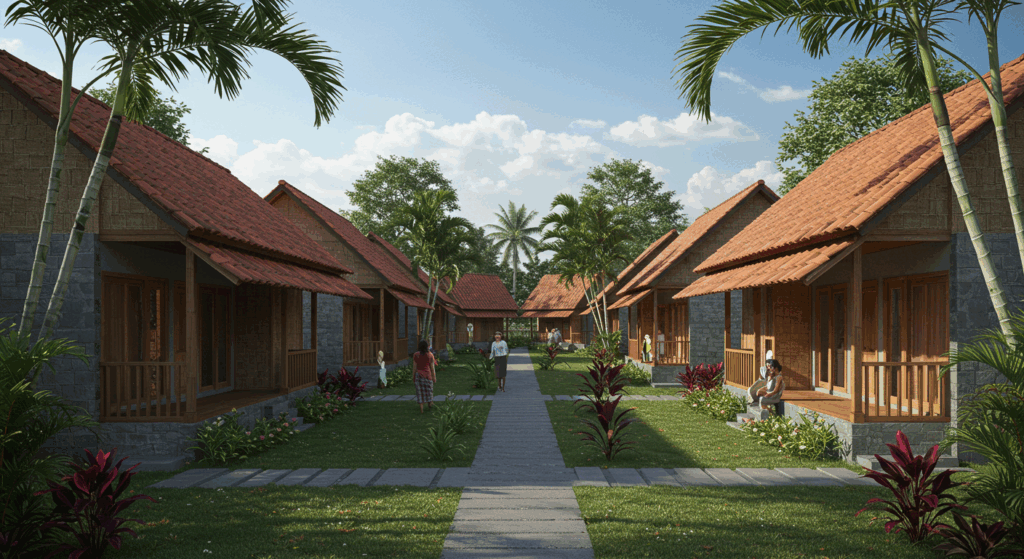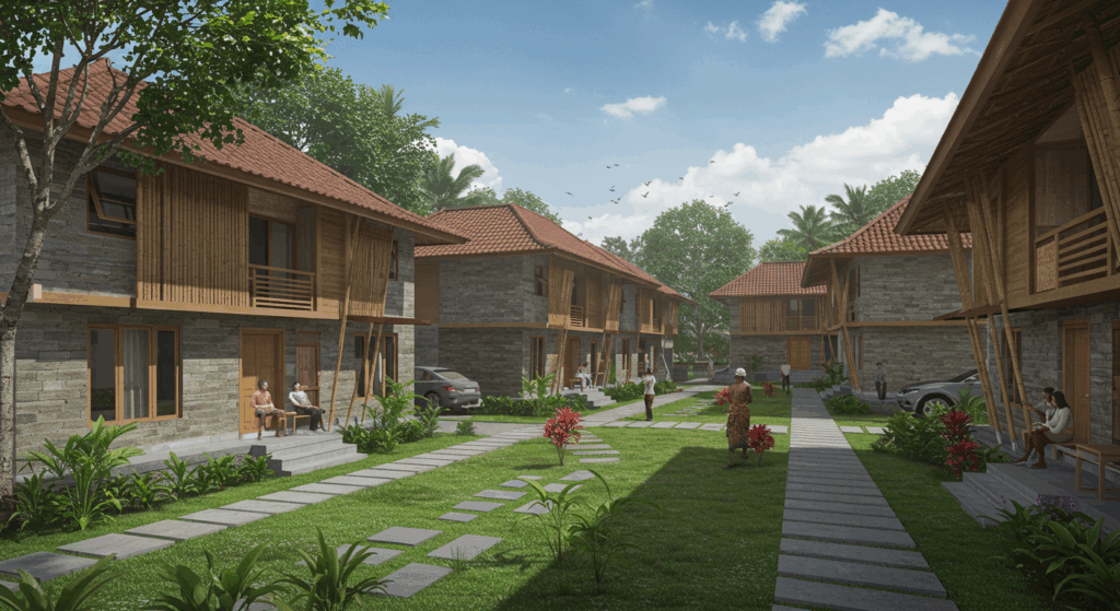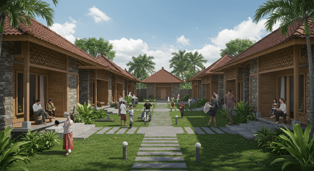Our architect and architectural services for social housing in Bali are dedicated to designing safe and affordable living spaces for low-income families. We focus on community-centered designs that ensure accessibility, stability, and well-being for residents in Bali.