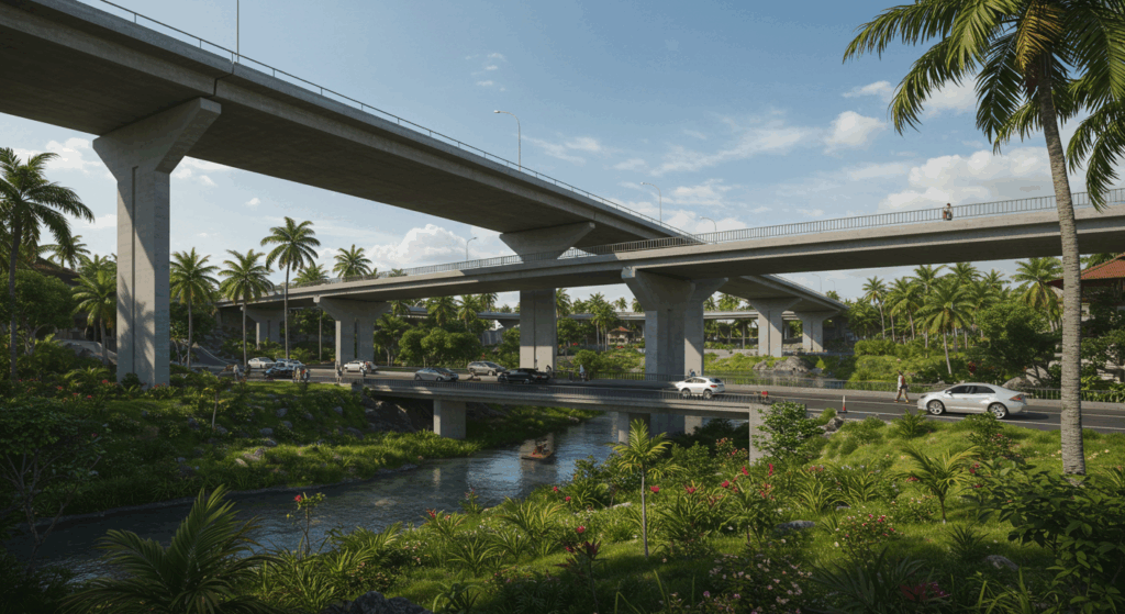 Our Architect and Architectural Services for Bridges and Overpasses in Bali design durable, aesthetically pleasing, and structurally sound infrastructure that enhances connectivity while blending seamlessly with Bali’s natural and urban landscapes.
