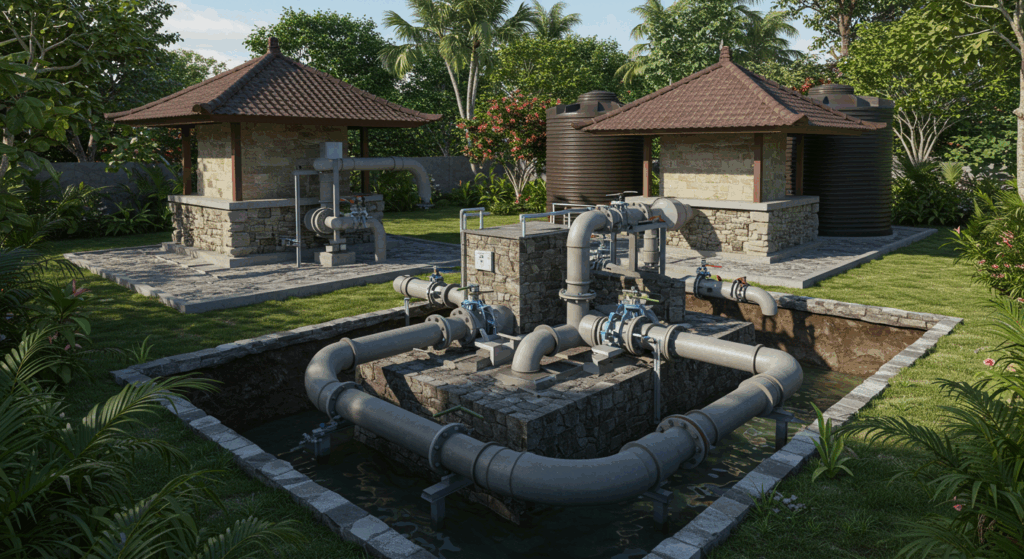 Our Architect and Architectural Services for Water Distribution Systems in Bali design efficient, sustainable, and resilient infrastructure that ensures reliable water supply while harmonizing with Bali’s natural and urban environments.