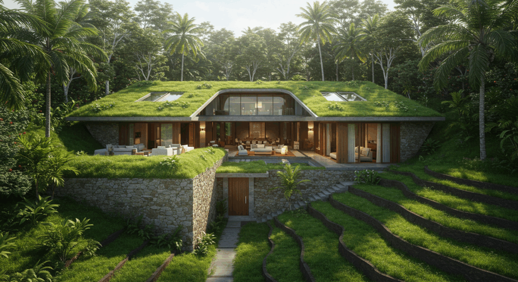 Our architectural services in Bali design eco-friendly underground homes that blend with Bali’s natural environment. We create insulated, energy-efficient spaces in Bali for sustainability and comfort. Our Bali designs offer privacy, resilience, and harmony with the landscape.
