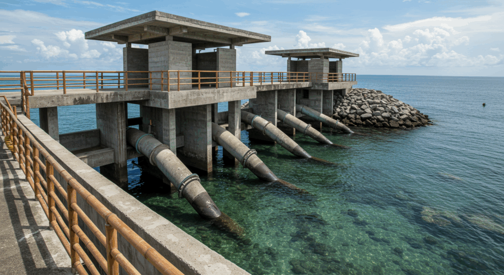 Our Architect and Architectural Services for Seawater Intake and Discharge Systems in Bali design efficient, sustainable marine infrastructure that supports industrial, energy, and desalination processes while minimizing environmental impact and preserving the island’s coastal ecosystem.