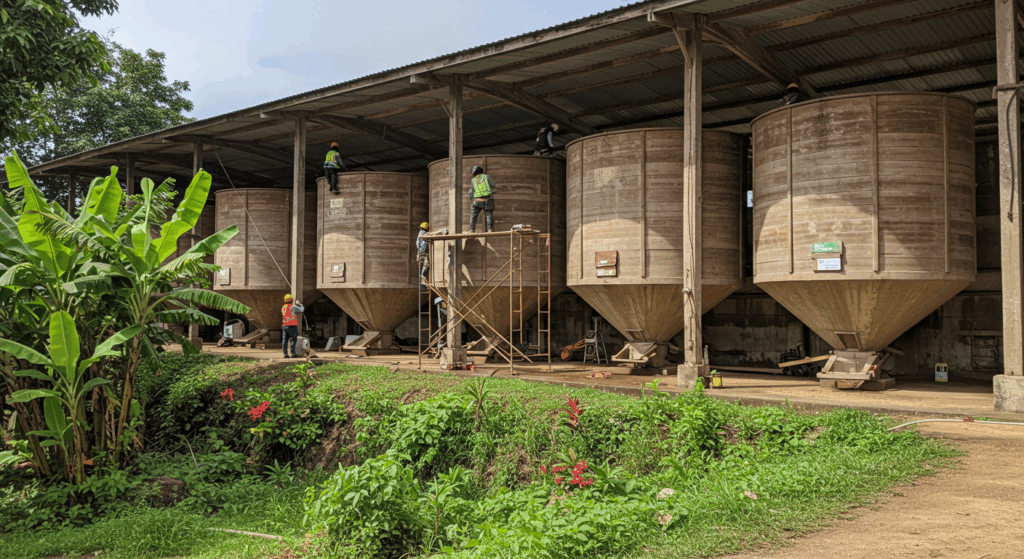 Our Exterior Services for Silos and Grain Storage in Bali focus on durability, moisture control, and efficient storage solutions, safeguarding crops while maintaining structural integrity in Bali’s climate.