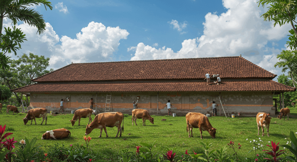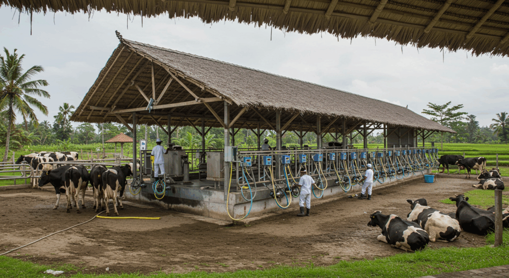 Our Exterior Services for Milking Parlors in Bali provide durable, hygienic, and well-ventilated structures that support efficient dairy operations while ensuring animal comfort and milk quality.