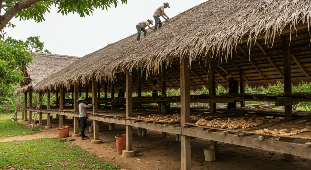 Our Exterior Services for Herb and Medicinal Plant Drying Houses in Bali provide well-ventilated, climate-optimized structures that enhance the drying process while preserving the potency of herbs and medicinal plants.