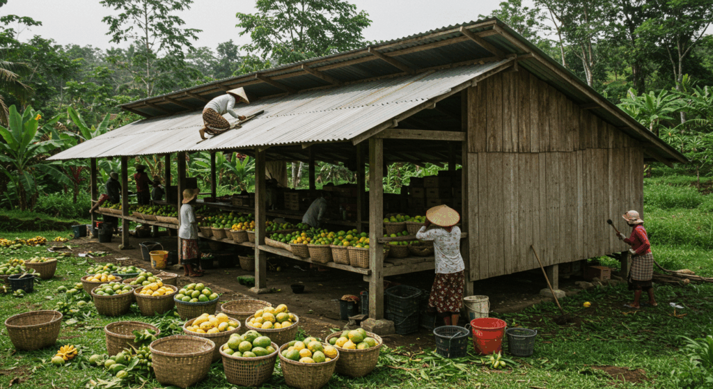 Our Exterior Services for Packing Sheds in Bali create functional, well-ventilated spaces designed for efficient sorting, packaging, and storage of fresh produce, ensuring quality preservation.
