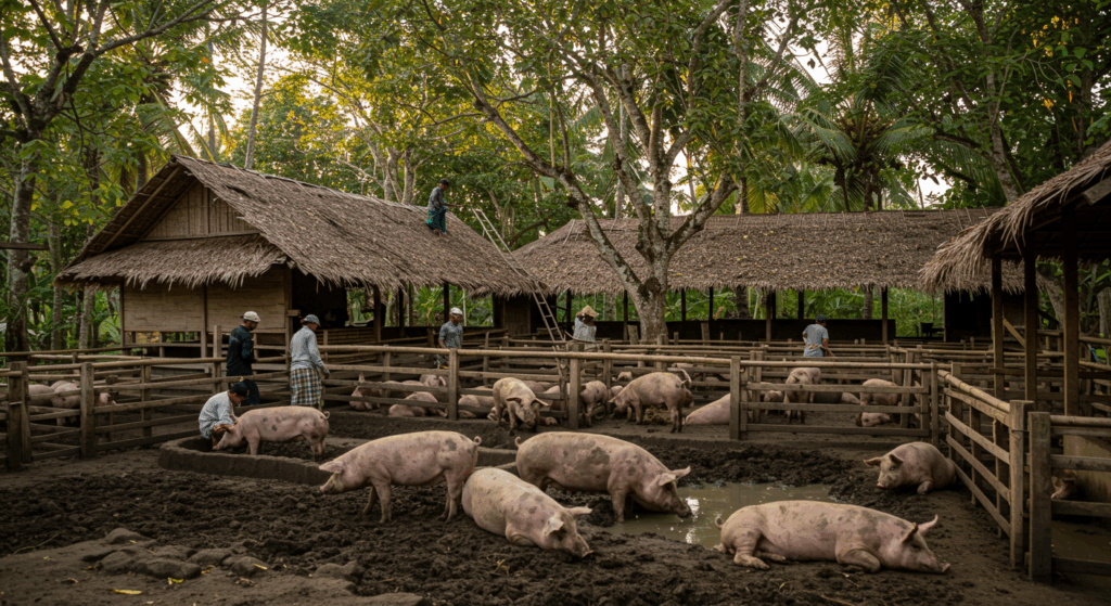 Our Exterior Services for Piggeries in Bali deliver biosecure, well-ventilated, and weather-resistant structures that promote healthy pig farming and efficient waste management.