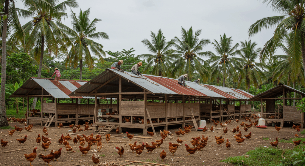 Our Exterior Services for Poultry Houses in Bali create well-ventilated, biosecure, and weather-resistant structures that support healthy poultry production while blending seamlessly with the environment.