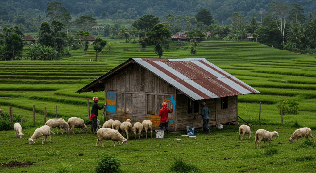 Our Exterior Services for Sheep Barns in Bali provide sturdy, climate-responsive shelters that enhance animal welfare, ventilation, and operational efficiency in sheep farming.