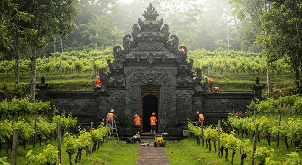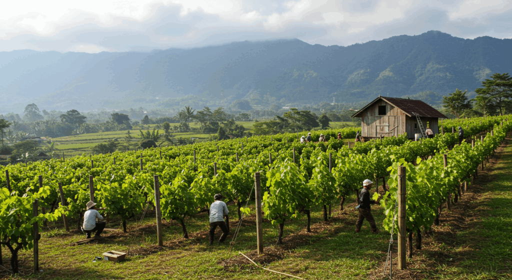 Our Exterior Services for Vineyard Trellises and Barns in Bali provide strong, weather-adapted structures that support healthy vine growth and efficient vineyard management.