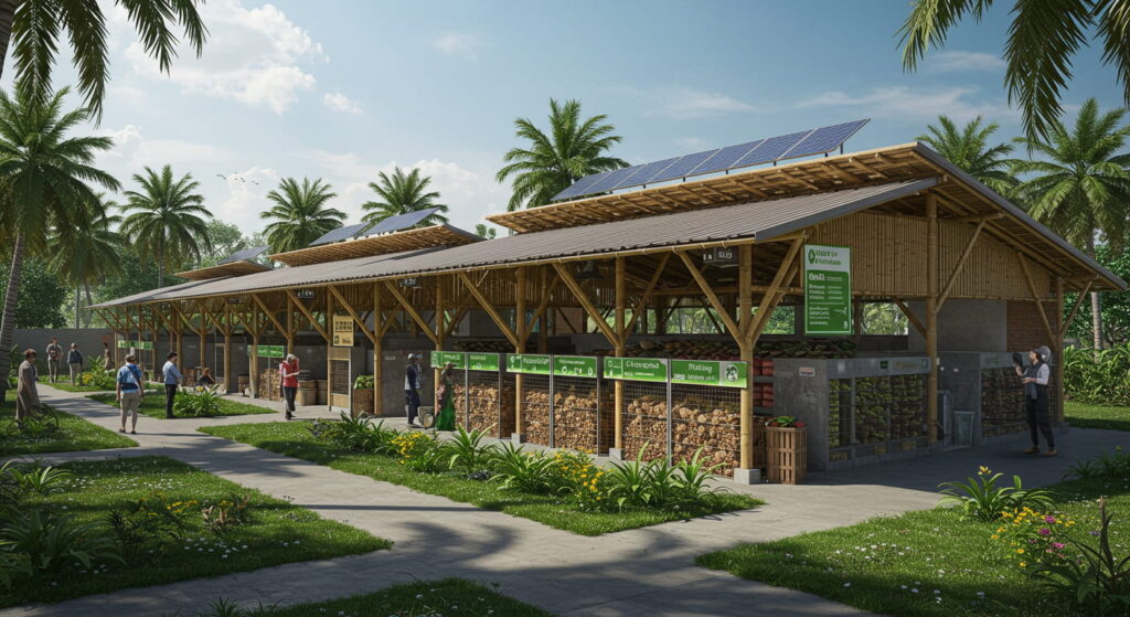 Our exterior design services for composting facilities in Bali combine functionality with sustainability, creating durable, eco-friendly structures that integrate seamlessly into the natural environment. Designed to optimize waste management and reduce environmental impact, these facilities are built with sustainable materials and energy-efficient systems.