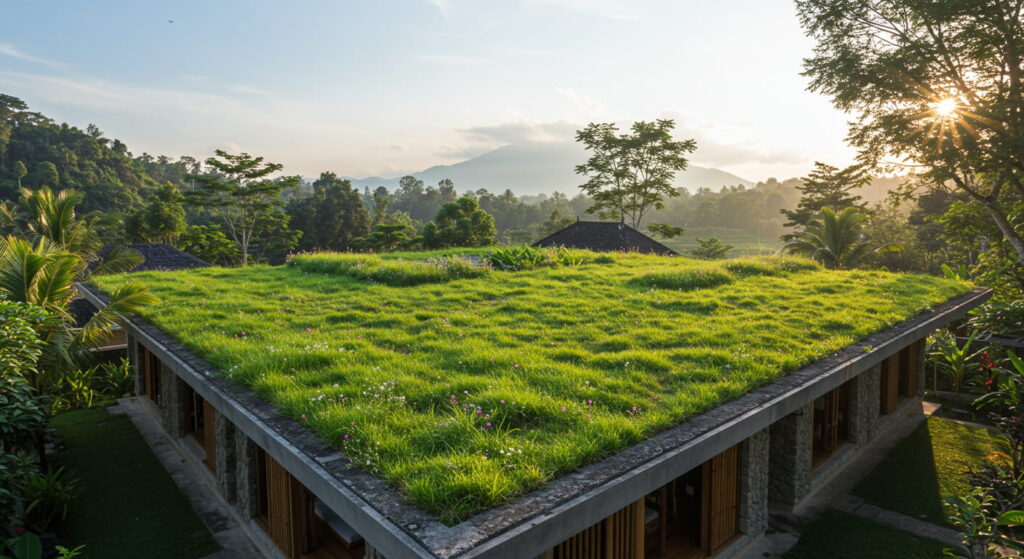 Our exterior design services for green roofs in Bali focus on creating sustainable, eco-friendly spaces that enhance energy efficiency and biodiversity. By incorporating native plants and innovative roofing techniques, we design green roofs that blend seamlessly with Bali’s natural beauty while reducing environmental impact.