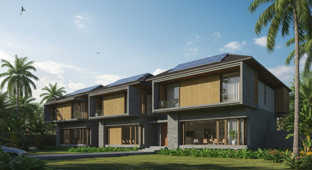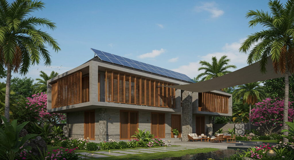 Our exterior design services for solar-powered homes in Bali focus on creating energy-efficient, sustainable exteriors that harness the power of the sun while blending with the island’s natural beauty. By integrating solar panels and eco-friendly materials, we design homes that reduce environmental impact and enhance energy independence.