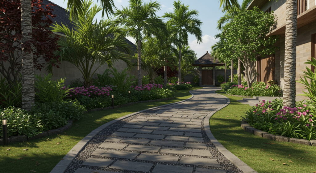Our exterior design services for permeable pavements in Bali create sustainable, water-efficient surfaces that allow rainwater to flow naturally into the ground. Designed with eco-friendly materials, these pavements reduce runoff, prevent flooding, and blend seamlessly into Bali’s environment.
