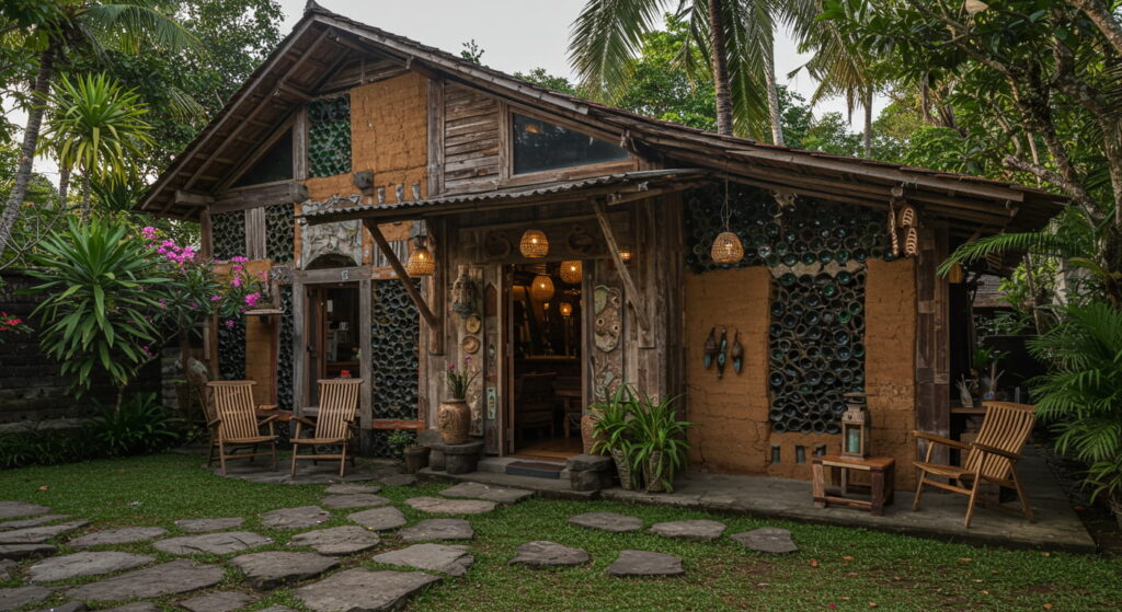 Our exterior design services for recycled material buildings in Bali emphasize sustainability by repurposing materials to create unique, eco-friendly structures. These designs reduce waste and environmental impact while maintaining aesthetic appeal, perfectly blending with Bali’s natural surroundings.