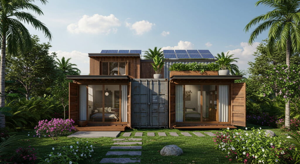 Our exterior design services for shipping container homes in Bali transform repurposed containers into stylish, sustainable living spaces that blend with the island’s natural beauty. By using eco-friendly materials and innovative designs, we create functional, durable exteriors that offer modern comfort while minimizing environmental impact.