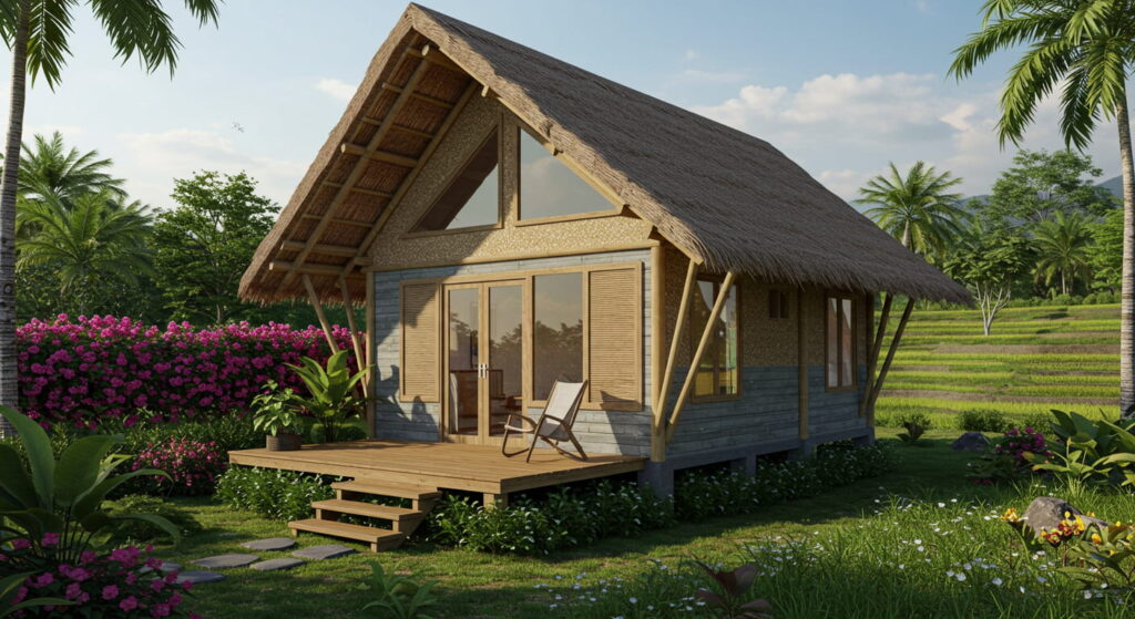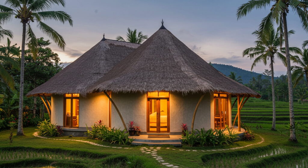 Our exterior design services for straw bale homes in Bali combine sustainability with natural insulation, creating energy-efficient, eco-friendly homes that blend seamlessly with the island’s landscape. Using locally sourced straw and natural materials, we design exteriors that promote comfort and environmental harmony.