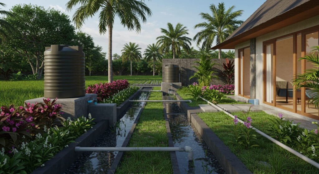 Our exterior design services for water recycling systems in Bali focus on creating sustainable, eco-friendly structures that integrate innovative water management solutions. By incorporating efficient recycling systems, we design exteriors that conserve water and promote environmental responsibility while blending seamlessly with Bali’s natural beauty.
