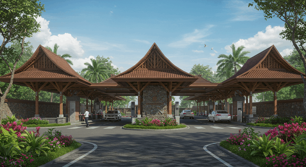 Our exterior design services for border checkpoints and customs facilities in Bali focus on creating secure, efficient, and aesthetically sensitive structures that balance functionality with the island’s unique environment. We use durable, sustainable materials and modern design techniques to ensure that these critical facilities support the flow of travelers and goods while integrating seamlessly with Bali’s natural beauty and cultural heritage. Our designs prioritize accessibility, security, and clear signage, while incorporating elements of Bali’s tropical charm to ensure the facility blends harmoniously with the surrounding landscape. The goal is to create welcoming yet secure spaces that contribute to both operational efficiency and the island’s visual appeal.