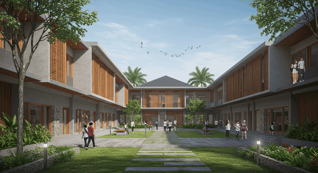 Our exterior design services for schools and universities in Bali focus on creating functional, inspiring, and sustainable outdoor spaces. Using durable materials and modern architectural elements, we design exteriors that enhance the learning environment while blending seamlessly with Bali’s natural beauty. Elevate educational institutions with designs that promote creativity, accessibility, and long-lasting appeal.