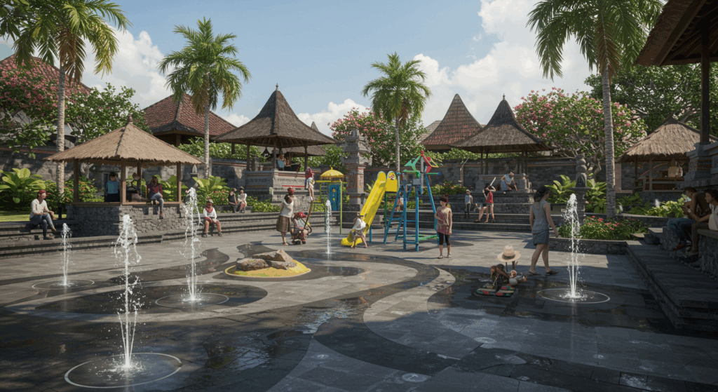 Exterior Design Services for Public Plazas with Interactive Elements (Fountains, Play Areas) in Bali