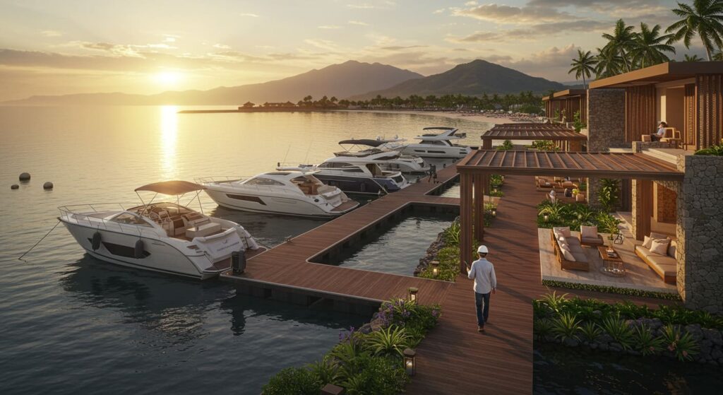 Our exterior design services for marinas in Bali focus on creating functional, sustainable, and aesthetically appealing spaces that enhance the experience for boaters and visitors while seamlessly integrating with Bali’s coastal beauty. Using durable, marine-grade materials and thoughtful design elements, we craft exteriors that ensure ease of access, safety, and comfort for vessels, passengers, and pedestrians. Experience a marina that offers modern amenities, stylish waterfront views, and an eco-friendly approach, all while celebrating Bali’s tropical charm and vibrant maritime culture.