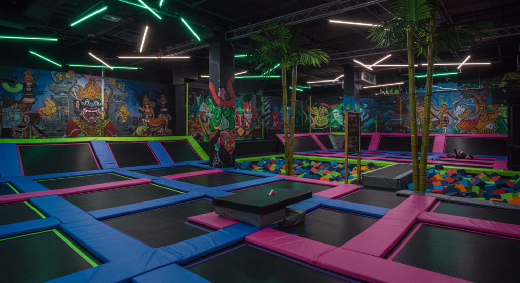 Our Interior Design Services for Trampoline Parks in Bali at Indonesia Contractors create dynamic, fun-filled spaces with vibrant, innovative designs that provide an exciting experience. By blending energetic aesthetics with Bali’s unique atmosphere, we craft spaces that encourage active play while offering an immersive, joyful environment.