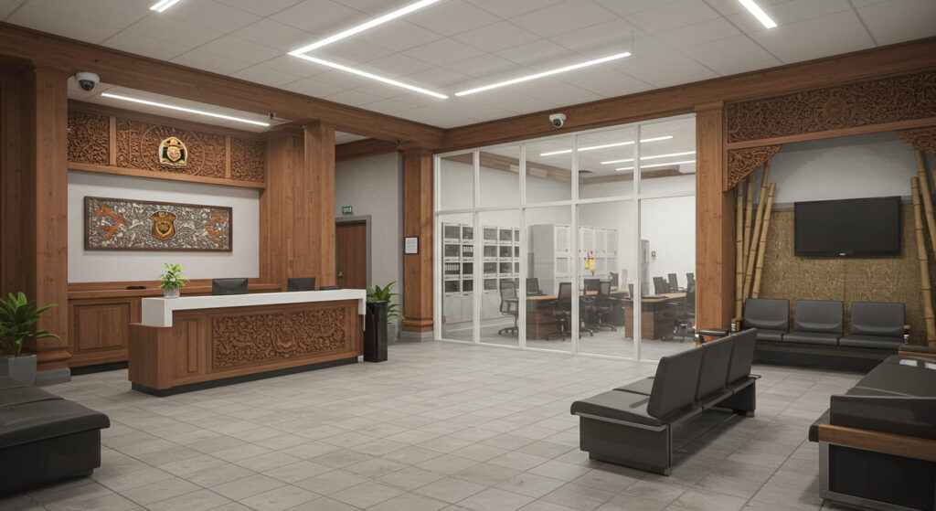Our Interior Design Services for Police Stations in Bali focus on creating secure, functional, and community-oriented environments that support effective law enforcement while respecting the cultural aesthetics of the island. Each station is designed to enhance operational flow, officer safety, and public trust, with layouts that integrate modern policing standards and Balinese design elements.