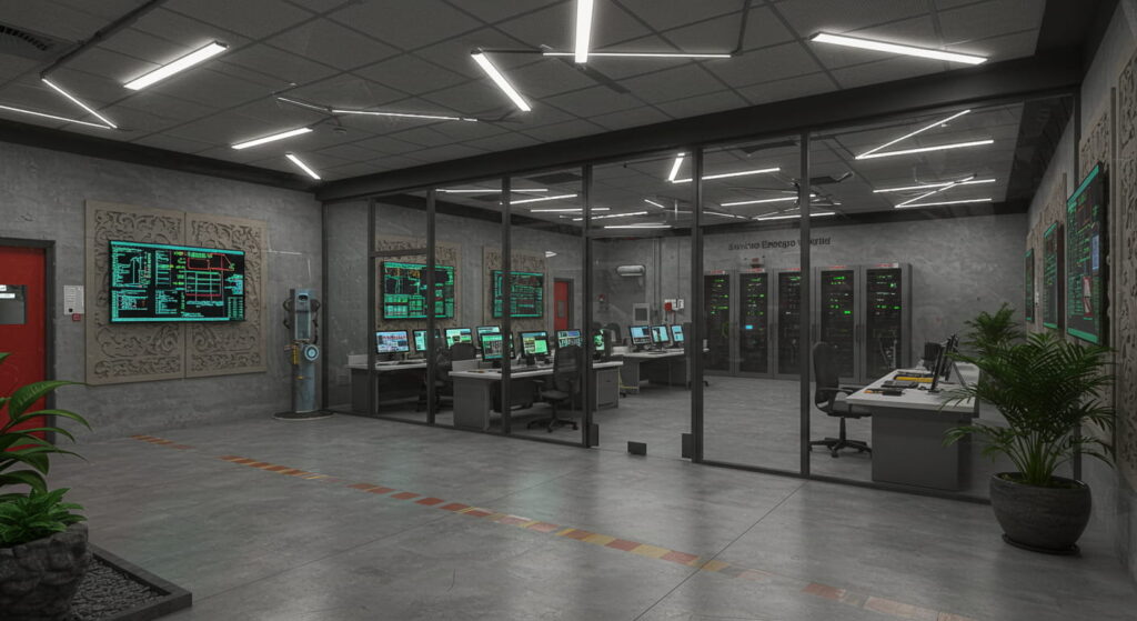 Our Interior Design Services for Critical Infrastructure Protection Centers in Bali address the need for coordinated emergency management, utility defense, and continuity planning, featuring resilient design and real-time data interfaces. The spaces are structured to house cross-functional teams and critical tech infrastructure within secure and sustainable environments.