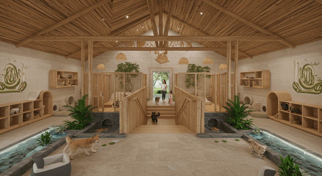 Our interior design services for animal shelters in Bali focus on creating safe, comfortable, and functional spaces that prioritize animal well-being. We blend modern design with Bali’s natural surroundings, ensuring spaces that provide security and comfort for animals while promoting a harmonious relationship with the environment.