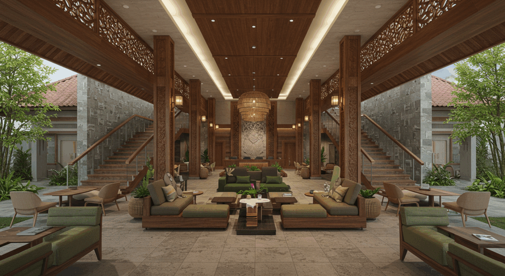 Our interior design services for convention centers in Bali craft dynamic, functional, and aesthetically captivating spaces that enhance events and gatherings. We integrate modern design with Balinese cultural elements, creating welcoming, inspiring venues that offer versatility for large-scale events while reflecting Bali’s unique identity.
