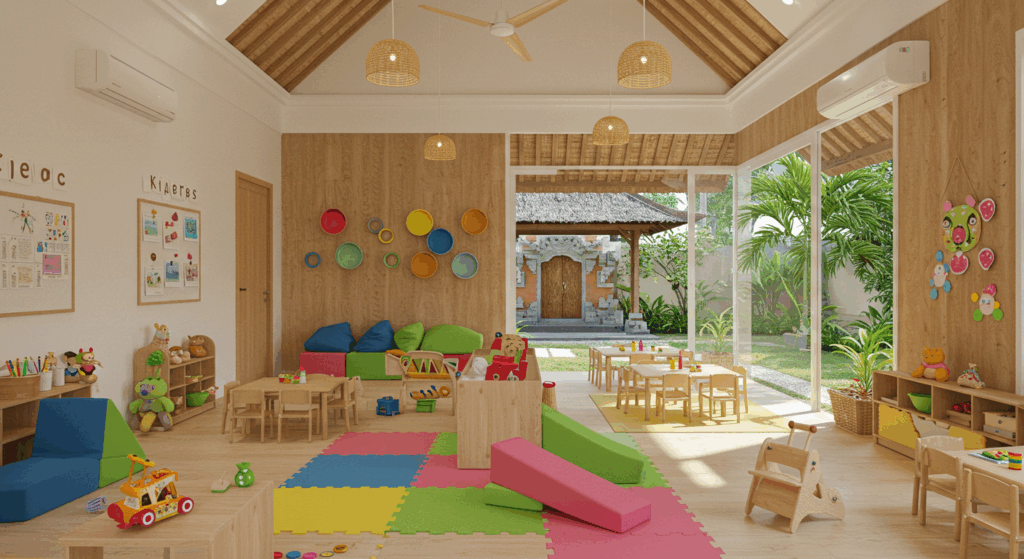 Our interior design services for daycare centers in Bali create safe, stimulating, and nurturing spaces for children. We incorporate vibrant designs, functional layouts, and Balinese-inspired elements to foster creativity, comfort, and learning, ensuring a playful yet secure environment that promotes development and well-being for young children.