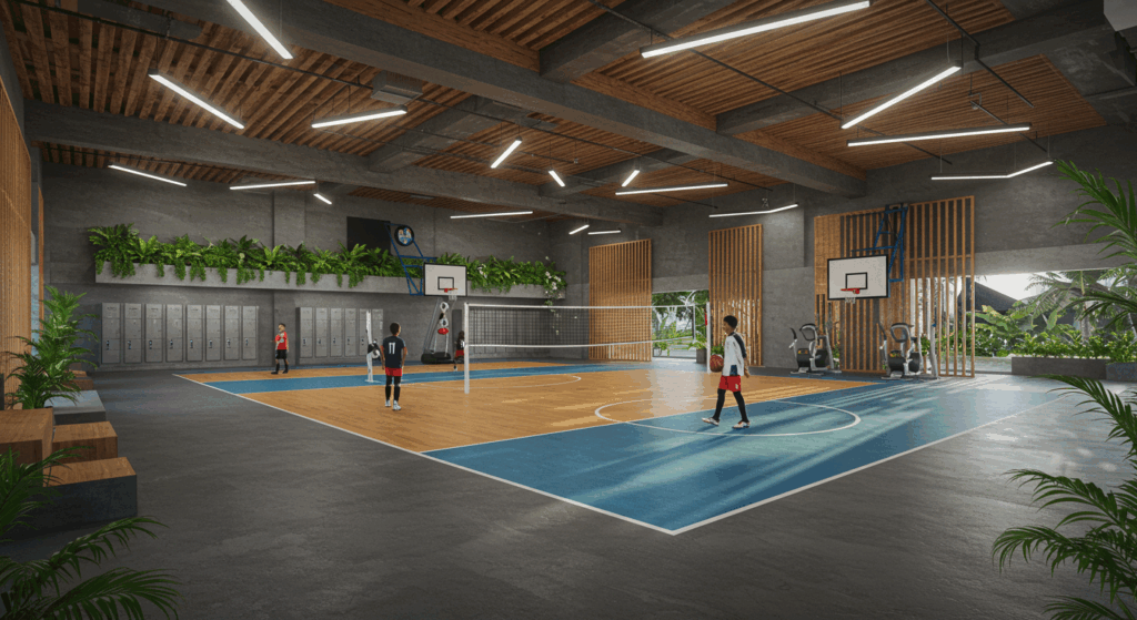 Our interior design services for sports facilities in Bali craft dynamic, high-performance environments that enhance athletic experiences. We embrace Bali’s natural beauty and cultural identity, ensuring that the design not only supports athletic excellence but also fosters a sense of community and connection to the island’s spirit.
