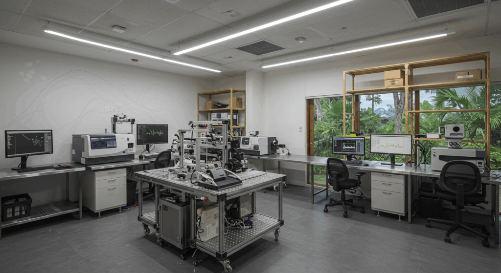 Our interior design services for photonics research labs in Bali create precision-focused, high-performance environments that support advanced optical and laser research. We design clean, light-controlled spaces with specialized features for scientific accuracy.