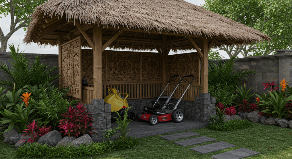 Our interior design services for lawn equipment storage in Bali provide practical and well-organized solutions. We ensure your tools are stored efficiently while maintaining a clean and stylish outdoor space that blends seamlessly with the natural surroundings.